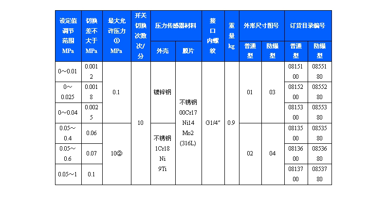 501/7D壓力控制器采用膜片式的傳感器,部分規格傳感器外殼材料是不銹鋼,可用于腐蝕性介質,也可用于空氣、氣體、水蒸汽等中性氣體和油等液體介質。控制器的設定值可調,調節范圍0~1MPa。